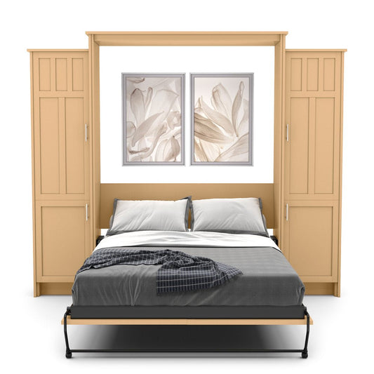 Full Size Murphy Bed - Left & Right Cabinet, Craftsman Style, Brushed Nickel Pulls